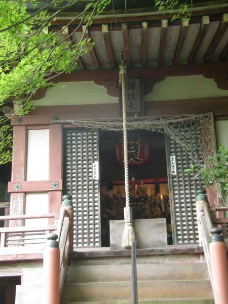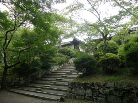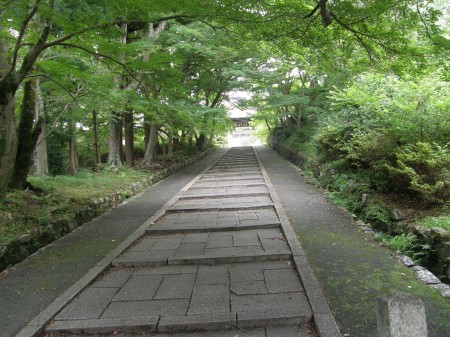 今度は一変して、夏の緑の中の毘沙門堂の動く襖絵のある広間へ続く階段です。緑が夏を象徴しています。