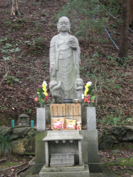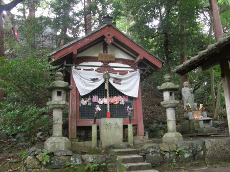 山門から下っていくと、東の方向に地蔵尊を祭ってある祠がありました。その横の方に少し見えていますが、