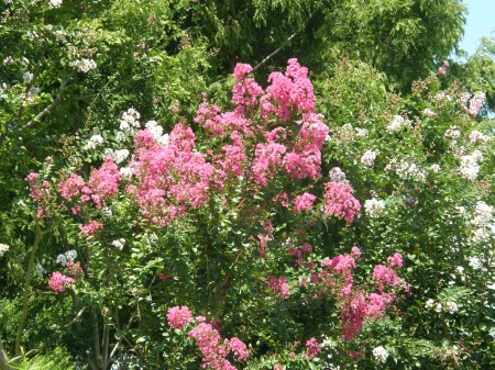 その近くには、赤と白の百日紅の花が咲いていました。夏の花の代表格ですね。