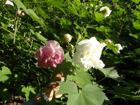 昨日の酔芙蓉のピンクの花と本日の酔芙蓉の白い花のコントラストが粋ですね。