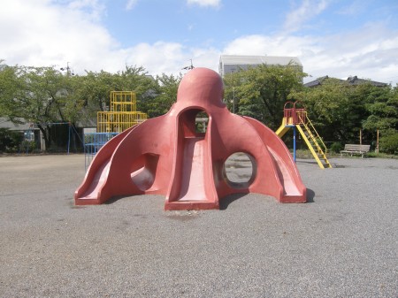 京都の山科にも同じ竹鼻という地名があり、そこの公園にもタコの滑り台があります。偶然にしてはおもしろい