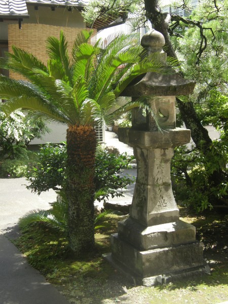 外に一歩出るとシュロだと思うのですがその横に灯篭が大仏様を守るようにありました。