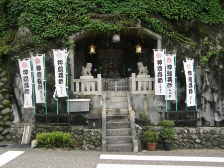 道路を隔てて、その道路沿いに神農薬師様が祭られている非常に珍しい光景に、なんとも微笑ましいものを感じてしまった。