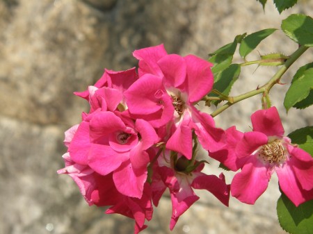 近くに、夏に咲く赤花のミニバラがありました。どこにでもあるので見ることもあるでしょう。