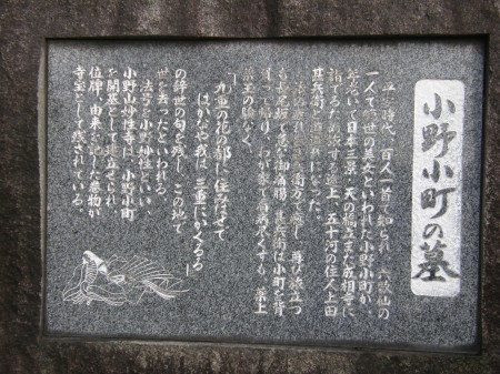 小野小町のお墓の石碑がありました。さも、正当性を主張しています。何らかの形で、関係はしているのだと
