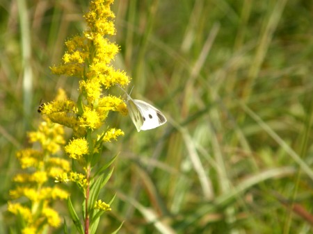 セイタカアワダチソウにモンシロチョウが止まっていましたが、寒さのせいでやはりもうひとつ元気がありま