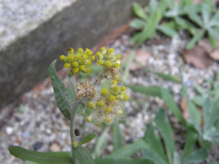 母子草がひっそりと咲いていました。目立たないが通り過ぎてしまってもおかしくないほどですが生命力が野草にありますね。 |