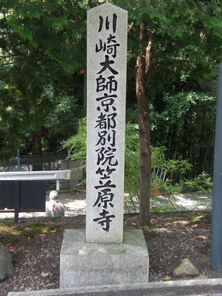 駐車場の片隅に本来の正式名称である川崎大師京都別院笠原寺の石碑がありました。 |