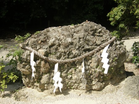 参道の途中にはさざれ石が置いてあって、石を大切にしているのがわかります。たんなれ、礫岩と言ってしまえば身も蓋