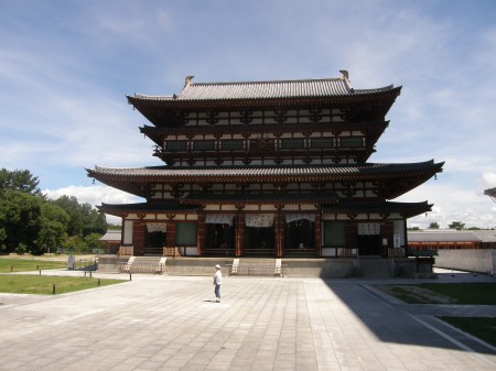 現在見ることのできる西塔、非常に綺麗な三重塔です。東塔は修復中で覆いがかけられていてまったく見ることができません。