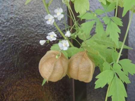 フウセンカズラ これもうちの猫額のような庭に咲いて、実をつけたフウセンカズラです。非常に強く、芽を出したら必ず種が取